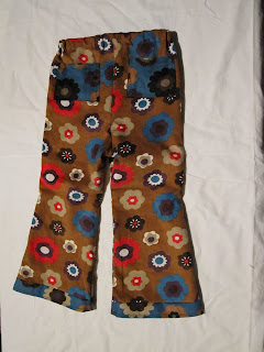 But I am just loving these brown ones, which I made with the cutest bell bottoms! I've taken a photo of the back view to show the contrasting pockets. I will definitely be making more of these, and my girls will definitely soon be seen about town in large flared trousers!